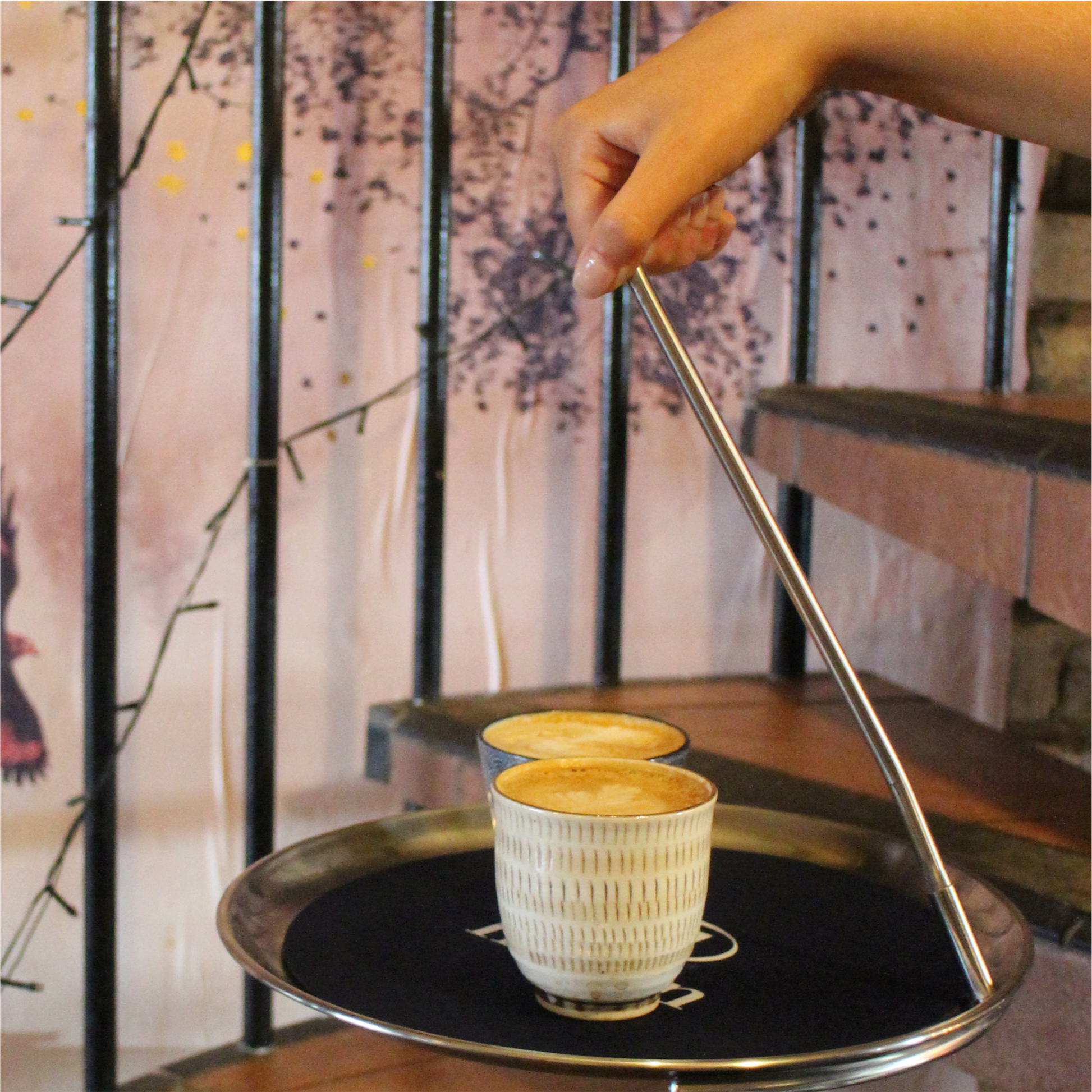 motion of the tray counteracts the sloshing or movement of items on the tray keeping them completely balanced. Super intuitive with no practice needed.