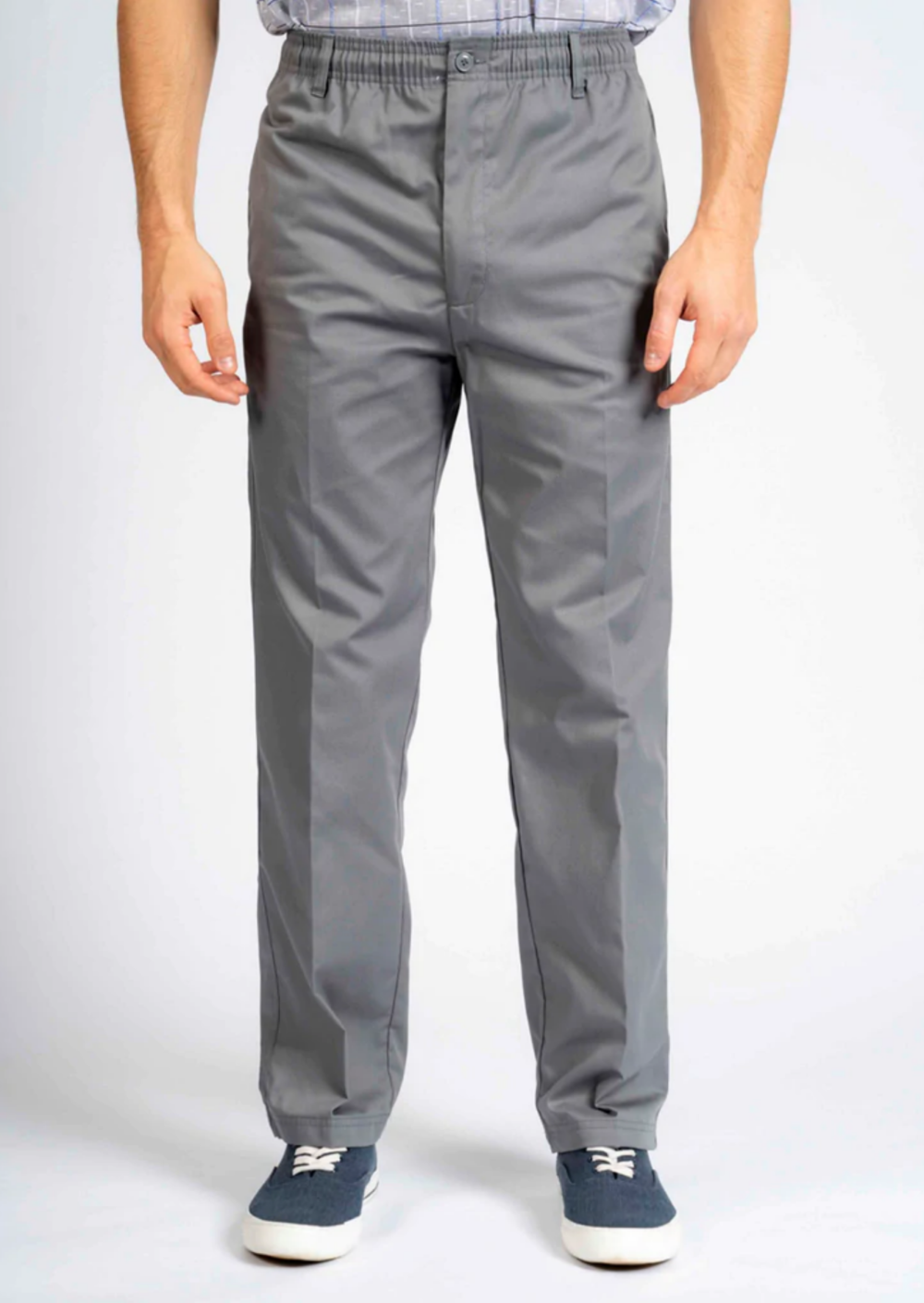 This straight leg, easy-care cotton blend men's trousers make the perfect pair for everyday wear. With an elasticated waistband, the trousers can be pulled-on with ease. There is also a fully opening zip fly with a velcro top button allowing easier access, especially for toileting.